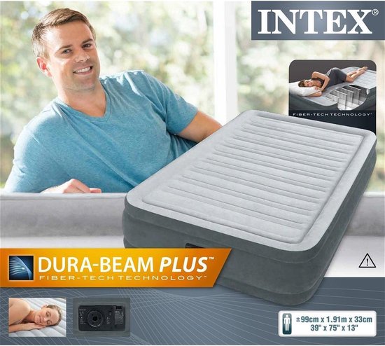 Let op: Het ligoppervlak kan tot 10 cm afwijken van de productlengte, houd hier rekening mee tijdens het bestellen. Bij het eerste gebruik moet het materiaal eventueel nog uitrekken, 's ochtends wat nieuwe lucht toevoegen is dan wellicht nodig. Een van de best verkochte producten van Intex is dit klassieke luchtbed; het Intex Classic Downy Luchtbed. Dit luchtbed is ideaal tijdens kampeervakanties, feestjes en logeerpartijen. Met een aparte pomp is hij zo opgeblazen en door de zachte toplaag ligt het luchtbed comfortabel voor een goede nachtrust. 203 x 152 x 22 cm Het luchtbed is gemakkelijk op te blazen en voorzien van een velours beschermlaag De toplaag van Intex luchtbed voelt zacht aan en zorgt ervoor dat de lakens op hun plek blijven zitten Snel opblaasbaar Na gebruik kan het geheel tot het formaat van een doos opgevouwen worden Twee-in-een ventiel die op twee manieren open kan, om het bed snel leeg te laten lopen en op te blazen Voor binnen- en buitengebruik Word zonder pomp geleverd Materiaal kan uitrekken bij het eerste gebruik, nieuwe lucht toevoegen is dan wellicht nodig Om het product schoon te maken gebruikt u een vochtige doek zonder schoonmaakmiddel.